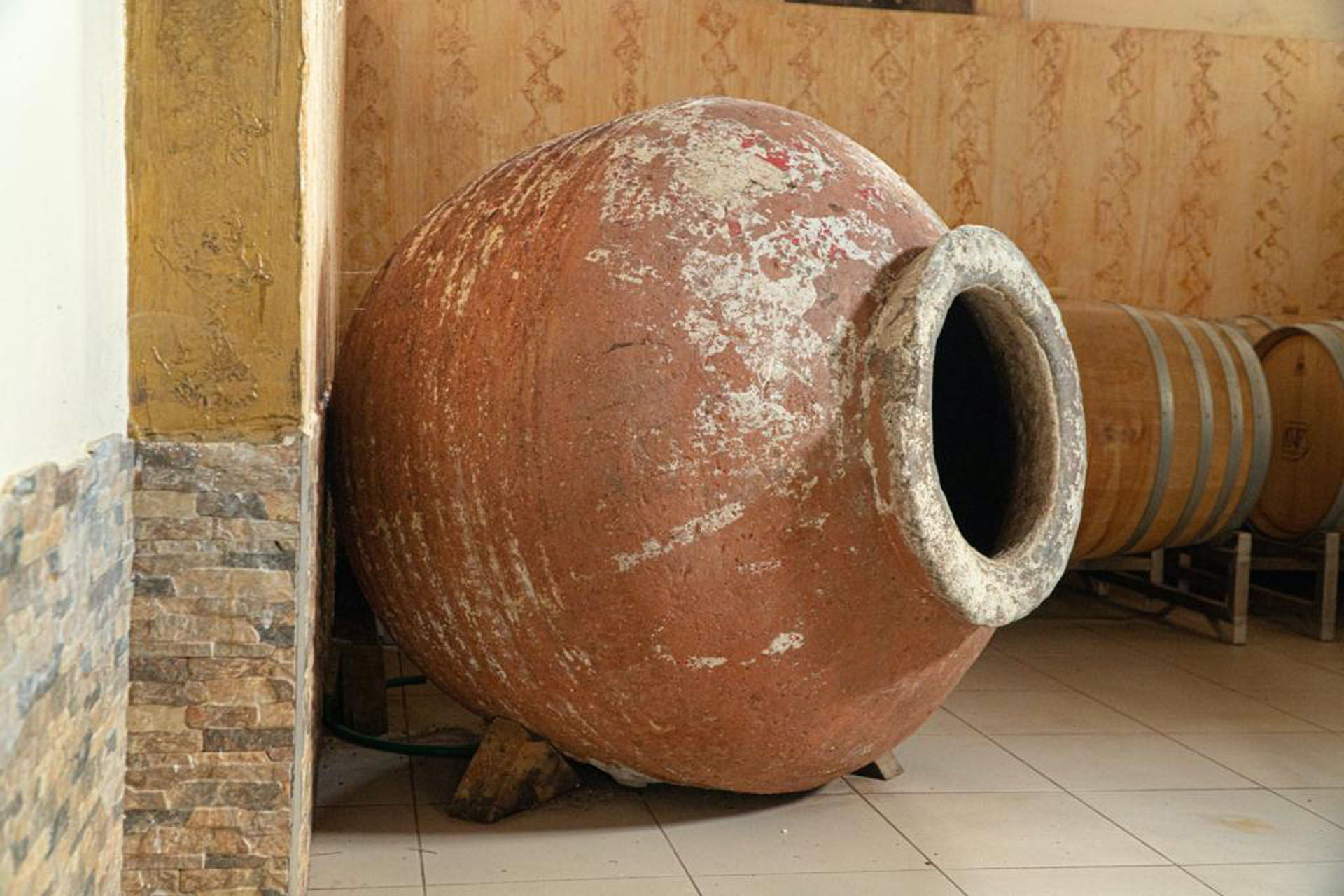 Duizenden jaren geleden worden de amforavormige kleivaten ook ingegraven in de grond. Dit zorgde voor een constante lage temperatuur, waardoor de gisting langzaam ging. In de wijngaard van Küp, kunt u deze oude kleivaten nog zien!